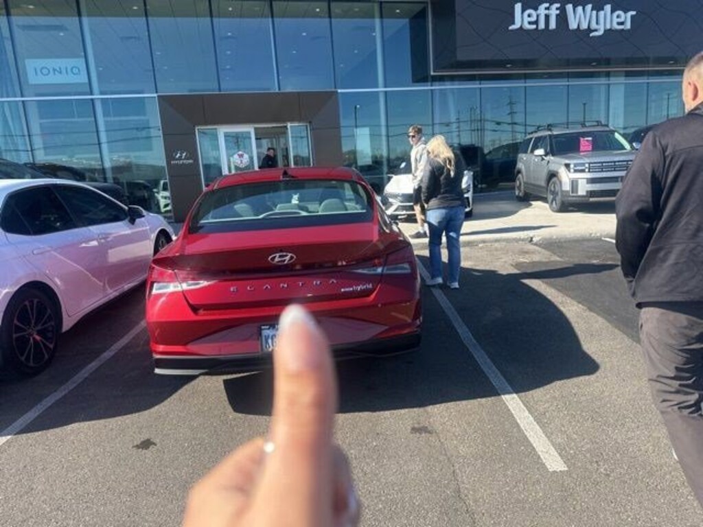 CARFAX One-Owner. Clean CARFAX. Jeff Wyler Hyundai of Fairfield is excited to offer this charming 2023 Hyundai Elantra Hybrid Blue in Ultimate Red. Well equipped with: Option Group 01, Hyundai Certified Used Vehicles Certified, I4, Android Auto, Apple CarPlay, CALL NOW FOR YOUR VIP APPOINTMENT 513-870-9800, FULLY SERVICED w/RECORDS, GUARANTEED FINANCING!! NO MATTER YOUR SITUATION WE CAN GET AN APPROVAL!!, THE #1 Volume dealer in the region! Come see why for yourself Today!!, WE PAY MORE FOR YOUR TRADE!!, 16" x 6.5J Alloy Wheels, 4-Wheel Disc Brakes, 6 Speakers, ABS brakes, Air Conditioning, Alloy wheels, AM/FM radio: SiriusXM, Apple CarPlay & Android Auto, Auto High-beam Headlights, Automatic temperature control, Brake assist, Bumpers: body-color, Cargo Net, Carpeted Floor Mats, Cloth Seat Trim, Delay-off headlights, Driver door bin, Driver vanity mirror, Dual front impact airbags, Dual front side impact airbags, Electronic Stability Control, Emergency communication system: Blue Link Connected Car Service (3-year complimentary subscription), Exterior Parking Camera Rear, First Aid Kit, Front anti-roll bar, Front Bucket Seats, Front Center Armrest, Front dual zone A/C, Front reading lights, Front wheel independent suspension, Fully automatic headlights, Heated door mirrors, Heated Front Bucket Seats, Heated front seats, Illuminated entry, Low tire pressure warning, Occupant sensing airbag, Outside temperature display, Overhead airbag, Overhead console, Panic alarm, Passenger door bin, Passenger vanity mirror, Power door mirrors, Power steering, Power windows, Radio: AM/FM/HD/SiriusXM Display Audio, Rear window defroster, Remote keyless entry, Reversible Cargo Tray, Security system, Speed control, Speed-sensing steering, Steering wheel mounted audio controls, Tachometer, Telescoping steering wheel, Tilt steering wheel, Traction control, Trip computer, and Variably intermittent wipers. Certified. Hyundai Certified Used Vehicles Details: * Vehicle History * Limited Warranty: 60 Month/60,000 Mile (whichever comes first) from original in-service date * 173+ Point Inspection * Includes 10-year/Unlimited Mileage Roadside Assistance with Rental Car and Trip Interruption Reimbursement; Please See Dealers for Specific Vehicle Eligibility Requirements. 10-Year/100,000 Mile Hybrid/EV Battery Warranty. 3-Months SiriusXM Trial Subscription. Complimentary 1 Year (Connected Care & Remote Pkgs). * Powertrain Limited Warranty: 120 Month/100,000 Mile (whichever comes first) from original in-service date * Roadside Assistance * Warranty Deductible: $50TO CHECK ON THE AVAILABILITY OF THIS VEHICLE REACH OUT TO ONE OF OUR TEAM MEMBERS!! ALSO SHOP ONLINE AT https://www.jeffwylerhyundaioffairfield.com/ Proudly Serving: Cincinnati, Dayton, Columbus, Louisville, Lexington, Indianapolis, Hamilton, Florence, Alexandria, Beavercreek, Springdale, West Chester, Monroe, Fairfield, Kenwood, Newport and all of greater Cincinnati Ohio, Indiana, and Northern Kentucky.