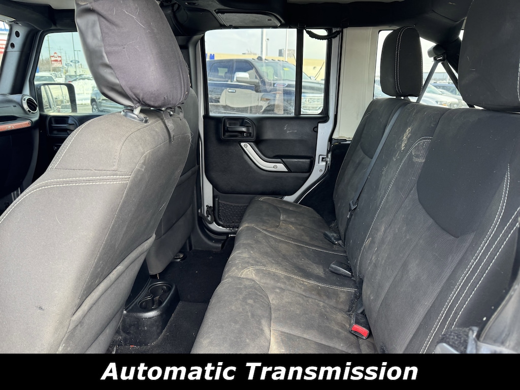 Recent Arrival!Quick Order Package 24G, Smoker's Group (Cigar Lighter and Removable Ash Tray), Trailer Tow Group (Class II Receiver Hitch and Trailer Tow w/4-Pin Connector Wiring), 18 x 7.5 Polished Satin Carbon Wheels, 3.21 Rear Axle Ratio, 4-Wheel Disc Brakes, 40GB Hard Drive w/20GB Available, 5-Year SIRIUSXM Traffic Service, 5-Year SIRIUSXM Travel Link Service, 8 Speakers, ABS brakes, Air Conditioning, Alloy wheels, AM/FM radio, Audio Jack Input for Mobile Devices, Auto-dimming Rear-View mirror, Black 3-Piece Hard Top, Brake assist, CD player, Cloth Bucket Seats, Compass, Delete Sunrider Soft Top, Driver door bin, Driver vanity mirror, Dual front impact airbags, Electronic Stability Control, Freedom Panel Storage Bag, Front anti-roll bar, Front Bucket Seats, Front Center Armrest w/Storage, Front fog lights, Front reading lights, Fully automatic headlights, Heated door mirrors, Heavy Duty Suspension w/Gas Shocks, Illuminated entry, Integrated roll-over protection, Integrated Voice Command w/Bluetooth, Leather steering wheel, Leather Wrapped Steering Wheel, Low tire pressure warning, Manufacturer's Statement of Origin, Occupant sensing airbag, Outside temperature display, Panic alarm, Passenger door bin, Passenger vanity mirror, Power door mirrors, Power steering, Power windows, Radio data system, Radio: Uconnect 130 AM/FM/CD/MP3, Radio: Uconnect 730N CD/DVD/MP3/HDD/NAV, Rear anti-roll bar, Rear Window Defroster, Rear Window Wiper/Washer, Remote keyless entry, Remote USB Port, Security system, SIRIUSXM Traffic, SIRIUSXM Travel Link, Speed control, Split folding rear seat, Steering wheel mounted audio controls, Sunrider Soft Top, Tachometer, Tilt steering wheel, Traction control, Trip computer, Uconnect Voice Command w/Bluetooth, and Variably intermittent wipers.