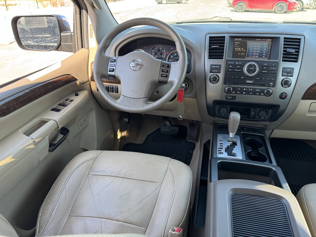 Jeff Wyler Nissan of Louisville is honored to offer this superb 2011 Nissan Armada SL in Tinted Bronze Metallic. ** ONE-OWNER CARFAX **, ** BLUETOOTH **, ** SUNROOF/MOONROOF **, ** BACKUP CAMERA **, ** THIRD ROW SEATING **, ** LEATHER INTERIOR **, ** HEATED SEATS **, ** EXCELLENT SERVICE HISTORY **, ** LOCALLY OWNED **, and ** HOME DELIVERY OPTIONS! ** 12 Speakers, 2.937 Axle Ratio, 20" 6-Spoke Aluminum-Alloy Wheels, 3rd row seats: split-bench, 4-Wheel Disc Brakes, ABS brakes, Adjustable pedals, Air Conditioning, Alloy wheels, AM/FM radio: XM, Anti-whiplash front head restraints, Auto-dimming Rear-View mirror, Auto-leveling suspension, Automatic temperature control, Bodyside moldings, Brake assist, Bumpers: body-color, CD player, Compass, Delay-off headlights, Driver door bin, Driver vanity mirror, Driver's Seat Mounted Armrest, Dual front impact airbags, Dual front side impact airbags, Electronic Stability Control, Exterior Parking Camera Rear, Floor & Cargo Mats (5-Piece Set), Four wheel independent suspension, Front anti-roll bar, Front Bucket Seats, Front Center Armrest, Front dual zone A/C, Front fog lights, Front reading lights, Fully automatic headlights, Garage door transmitter: HomeLink, Heated door mirrors, Illuminated entry, Leather Shift Knob, Leather-Appointed Seat Trim, Low tire pressure warning, Occupant sensing airbag, Outside temperature display, Overhead airbag, Overhead console, Panic alarm, Passenger door bin, Passenger seat mounted armrest, Passenger vanity mirror, Power door mirrors, Power driver seat, Power passenger seat, Power steering, Power windows, Radio data system, Radio: Digital Bose 265-Watt AM/FM/In Dash 6CD, Rear air conditioning, Rear anti-roll bar, Rear audio controls, Rear Cargo Net & Cargo Organizer, Rear Parking Sensors, Rear reading lights, Rear seat center armrest, Rear window defroster, Rear window wiper, Reclining 3rd row seat, Remote keyless entry, Roof rack, Security system, Speed control, Speed-sensing steering, Speed-Sensitive Wipers, Split folding rear seat, Steering wheel mounted audio controls, Tachometer, Tilt steering wheel, Traction control, Trip computer, Variably intermittent wipers, and Voltmeter Our PRE-OWNED vehicles are put through a rigorous 167- POINT QUALITY ASSURANCE INSPECTION along with an average amount of over $1,400.00 SPENT to recondition each vehicle so we can be sure to deliver you the highest quality vehicle like you deserve! ***ONLINE PRICE DOES NOT INCLUDE WYLER FAMILY FIRST PACKAGE*** Stop by 4136 Shelbyville Road to see for yourself, or give us a call @ 502-897-3151 to schedule your test drive! ** ONE-OWNER CARFAX **, ** BLUETOOTH **, ** SUNROOF/MOONROOF **, ** BACKUP CAMERA **, ** THIRD ROW SEATING **, ** LEATHER INTERIOR **, ** HEATED SEATS **, ** EXCELLENT SERVICE HISTORY **, ** LOCALLY OWNED **.