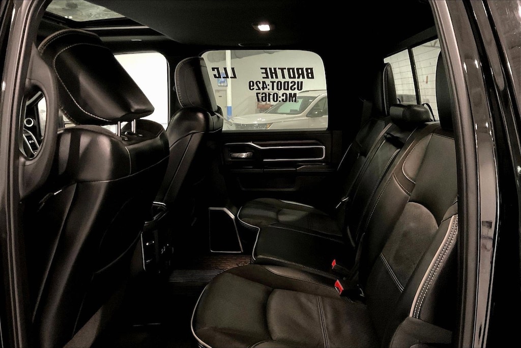 4WD/AWD, 12" Touchscreen Display, 17 Speaker harman/kardon Premium Sound, 18" x 8" Polished Aluminum Wheels, 2 Way Rear Headrest Seat, 220 Amp Alternator, 2nd Row In Floor Storage Bins, 3.73 Axle Ratio, 4 Way Front Headrests, 4-Wheel Disc Brakes, 4G LTE Wi-Fi Hot Spot, 50 Gallon Fuel Tank, 6000# Front Axle w/Hub Ext, 8.4" Touchscreen Display, ABS brakes, Active Noise Control System, Adaptive Cruise Control w/Stop, Adaptive Steering System, Air Conditioning, Alexa Built-In, All R1 High Radios, All Radio Equipped Vehicles, AM/FM radio: SiriusXM with 360L, Apple CarPlay, Apple CarPlay/Android Auto, Auto Adjust In Reverse Exterior Mirrors, Auto Dimming Exterior Passenger Mirror, Auto High Beam Headlamp Control, Auto Level Rear Air Suspension, Auto Power-Folding Mirrors, Auto-Dimming Exterior Mirrors, Auto-dimming Rear-View mirror, Automatic temperature control, Black Exterior Truck Badging, Black Headlamp Bezels, Black Interior Accents, Black RAM Head Tailgate Badge, Black Tail Lamp Bezels, Black Wheel Center Hub, Blind Spot & Cross Path Detection, Body Color Grille Surround, Box & Rear Fender Clearance Lamps, Brake assist, Bumpers: body-color, Center Hub, Chrome Exterior Mirrors, Clearance Lamps, Cluster 12" TFT Color Display, Compass, Connected Travel & Traffic Services, Connectivity - US/Canada, CTR Stop Lamp w/Cargo View Camera, Dash Pass Thru Wire Circuits, Delay-off headlights, Digital Rearview Mirror, Disassociated Touchscreen Display, Driver door bin, Driver vanity mirror, Dual front impact airbags, Dual front side impact airbags, Dual Rear Wheels, Electronic Stability Control, Electronically Controlled Throttle, Exterior Mirrors Courtesy Lamps, Exterior Mirrors w/Heating Element, Exterior Mirrors w/Memory, Exterior Mirrors w/Supplemental Signals, Foam Bottle Insert (Door Trim Panel), Folding Flat Load Floor Storage, For Details Visit DriveUconnect.com, Forward & Reverse Utility Lights, Front anti-roll bar, Front Center Armrest w/Storage, Front dual zone A/C, Front LED Fog Lamps, Front Seat Back Map Pockets, Full Speed Forward Collision Warning Plus, Fully automatic headlights, Garage door transmitter, Global Telematics Box Module (TBM), Gloss Black Grille Billets/Accents, Google Android Auto, GPS Antenna Input, GPS Navigation, HD Radio, Heated door mirrors, Heated Front Seats, Heated front seats, Heated Second Row Seats, Heated Steering Wheel, Heavy Duty Snow Plow Prep Group, High Back Seats, I/P Mounted Auxiliary Switches, Illuminated entry, Integrated Center Stack Radio, Integrated Voice Command w/Bluetooth, Lane Keep Assist, Laramie Level B Equipment Group, Leather steering wheel, Leather Trim 40/20/40 Bench Seat, LED Reflector Headlamps, LED Tail Lamps, Low tire pressure warning, Manufacturer's Statement of Origin, Mirror Running Lights, MOPAR Front & Rear Rubber Floor Mats, MOPAR Spray In Bedliner, Night Edition, Occupant sensing airbag, Off-Road Information Pages, Overhead airbag, Painted Flat Cab-Length Side Steps, Panic alarm, ParkSense Front/Rear Park Assist System, ParkView Rear Back-Up Camera, Passenger door bin, Power 8-Way Adjustable Passenger Seat, Power Adjust 8-Way Driver Seat, Power Adjust Mirrors, Power Adjustable Pedals w/Memory, Power door mirrors, Power driver seat, Power Heat Fold Memory Telescopic Mirrors, Power passenger seat, Power steering, Power Sunroof, Power Telescoping Mirrors, Power windows, Power-Adjustable Convex Aux Mirrors, Quick Order Package 2HH Laramie, Radio data system, Radio: Uconnect 5 Nav w/12.0" Display, Radio: Uconnect 5 Nav w/8.4" Display, Rain Sensitive Windshield Wipers, Rear 60/40 Folding Seat, Rear Power Sliding Window, Rear step bumper, Rear Window Defroster, Remote keyless entry, Remote Tailgate Release, Safety Group, Security system, Selectable Tire Fill Alert, SiriusXM Radio Service, SiriusXM w/360L, Speed control, Split folding rear seat, Sport Performance Hood, Steering wheel mounted audio controls, Surround View Camera System, Tachometer, Tilt steering wheel, Tip St