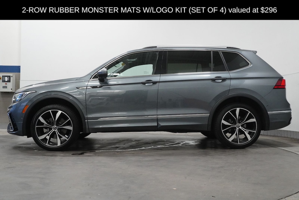CARFAX One-Owner. Clean CARFAX. Platinum Gray Metallic 2023 Volkswagen Tiguan 2.0T SEL R-Line AWD 8-Speed Automatic with Tiptronic 2.0L TSI DOHC AWD, AM/FM radio: SiriusXM with 360L, Bumperdillo Rear Bumper Protection Plate in Black, Emergency communication system: VW Car-Net Safe & Secure 5-year, Heated front seats, Heated steering wheel, Heated/Ventilated Front Comfort Sport Seats, Navigation system: VW Car-Net Guide & Inform, Perforated Vienna Leather Seating Surfaces, Power Liftgate, Power moonroof, Ventilated front seats.